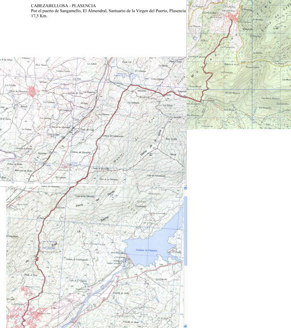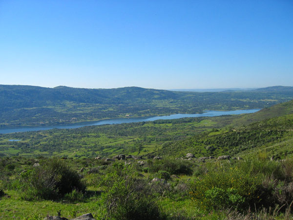 Al llegar al Puerto de Sangamello, tras descender entre unos caseríos, podemos contemplar a la izquierda el Valle del Jerte, con la presa de Plasencia al fondo y a la derecha el Valle del Ambroz y al fondo la peña de Francia.