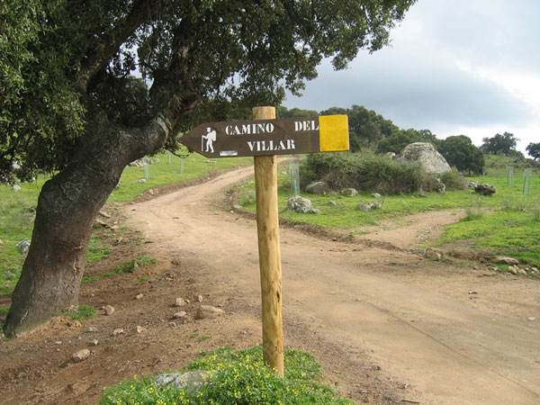 Pasada la misma, llegamos a la altura de un abrevadero, que dejamos a la izquierda y nos dirigimos hacia un árbol, a la derecha, que hay junto a la pared de una finca para tomar la vereda (poco señalizada) que discurre paralelo a esta pared hasta llegar al final de la misma, sin cruzarla, donde encontraremos otra pared con una cancela que se debe pasar y continuar el camino por la margen izquierda del arroyo, llegando a un camino asfaltado que lleva al embalse de la garganta de la Oliva. Tras recorrer unos100 m., siempre en dirección suroeste, tomamos el camino de tierra que sale a la izquierda. Es el camino viejo del Villar.